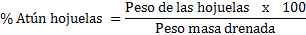 c) Expresar el peso del atún en hojuelas como porcentaje (%) de la masa drenada.