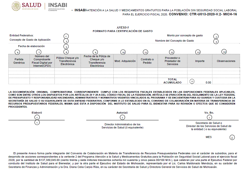 CONVENIO DE COLABORACIÓN EN MATERIA DE TRANSFERENCIA DE RECURSOS PRESUPUESTARIOS FEDERALES CON EL CARÁCTER DE SUBSIDIOS PARA EL DESARROLLO DE ACCIONES CORRESPONDIENTES A LA VERTIENTE 2 DEL PROGRAMA "ATENCIÓN A LA SALUD Y MEDICAMENTOS GRATUITOS PARA LA POBLACIÓN SIN SEGURIDAD SOCIAL LABORAL PARA EL EJERCICIO FISCAL 2020", QUE CELEBRAN POR UNA PARTE EL INSTITUTO DE SALUD PARA EL BIENESTAR, AL QUE EN LO SUCESIVO SE LE DENOMINARÁ EL "INSABI", REPRESENTADO POR EL MTRO. JUAN ANTONIO FERRER AGUILAR, EN SU CARÁCTER DE DIRECTOR GENERAL Y, POR LA OTRA PARTE, EL EJECUTIVO DEL ESTADO DE MICHOACÁN, EN ADELANTE "LA ENTIDAD", REPRESENTADO POR EL LIC. CARLOS MALDONADO MENDOZA, EN SU CARÁCTER DE SECRETARIO DE FINANZAS Y ADMINISTRACIÓN, Y DE LA DRA. DIANA CELIA CARPIO RÍOS, EN SU CARÁCTER DE SECRETARIA DE SALUD Y DIRECTORA GENERAL DE SERVICIOS DE SALUD DE MICHOACÁN, A QUIENES DE MANERA CONJUNTA SE LES DENOMINARÁ COMO "LAS PARTES", AL TENOR DE LOS ANTECEDENTES, DECLARACIONES Y CLÁUSULAS SIGUIENTES: