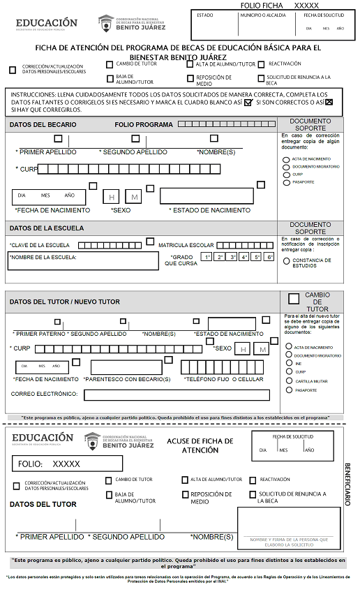 Anexo 5.- Ficha de Atención del Programa de Becas de Educación Básica para el Bienestar Benito Juárez