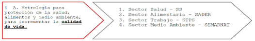 | Sector comercio en general | Otorgar a los consumidores y proveedores la confianza de que los bienes, productos, procesos y servicios, objeto de transacciones comerciales, cumplen con lo especificado en calidad y cantidad, tanto a nivel nacional como internacional. | Cuantificación de magnitudes relacionadas al intercambio de bienes como: Masa, volumen, flujo, longitud, etc. Cuantificación de magnitudes relacionadas a la calidad de los productos: color, contenido nutricional, capacidad aislante de transferencia de calor y de ruido, consumo de energía. Bromatológicos y adulterantes en alimentos, pureza de metales preciosos. Densidad, viscosidad, parámetros químicos, etc. Aprobación de modelo. Autorización de trazabilidad a patrones nacionales y extranjeros. | Lograr una interoperabilidad para trabajar conjuntamente con las Dependencias y Entidades que lleven un adecuado control metrológico, normativo y evaluación de la conformidad. |