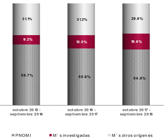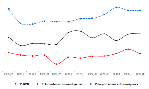 474. En efecto, el precio promedio de las importaciones de otros orígenes se ubicó por arriba del precio de las ventas nacionales al mercado interno, en porcentajes de 25% en el periodo octubre de 2015-septiembre de 2016, 17% en el periodo octubre de 2016-septiembre de 2017 y 25% en el periodo investigado.