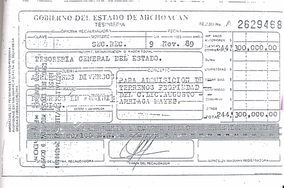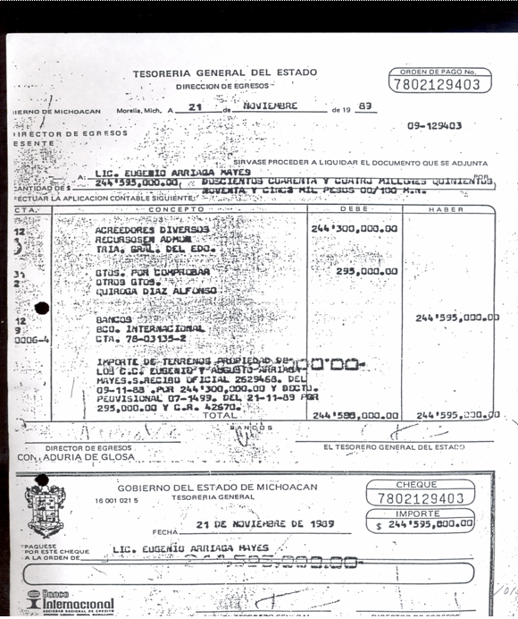 "...se manifiesta que con respecto a los CC. Lic. Eugenio y Augusto Arriaga Mayés, Celia Servín y Rafael Arriaga, no se encontró que se les haya otorgado permiso de arrendamiento de terrenos federales de este lago o de la llamada Ciénega de Chapultepec o Laguna de Tzurumútaro..."