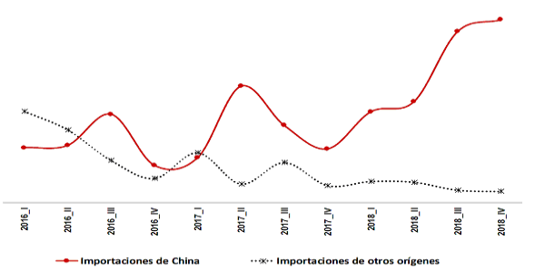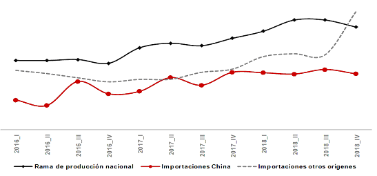 comportamiento está asociado con la caída en la producción, como resultado del incremento que registraron las importaciones originarias de China, y