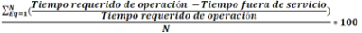 | Valor | 99.5970 | Se calculó con el estimado de horas promedio fuera de servicio de los equipos registrados. Para el seguimiento del indicador se deberá fortalecer el mecanismo de reporte. | |||||||||||||||||