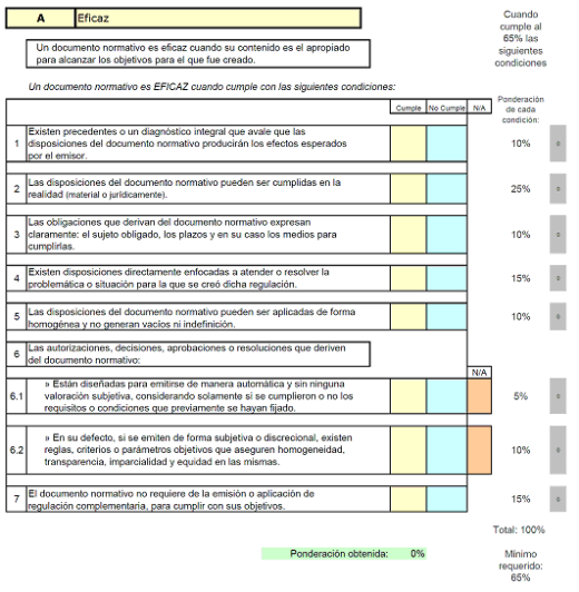 VI. Calidad Regulatoria: Conjunto de atributos de eficacia, eficiencia, consistencia y claridad que contiene un proyecto de instrumento normativo;