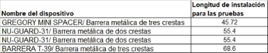 | | | Para sistemas redirectivos las pruebas Nivel de Contención 1 De la 1-30 a 1-37 Nivel de Contención 2 De la 2-30 a 2-37 Nivel de Contención 3 De la 3-30 a 3-37 Para sistemas no redirectivos Nivel de Contención 1 De la 1-40 a 1-45 Nivel de Contención 2 De la 2-40 a 2-45 Nivel de Contención 3 De la 3-30 a 3-37 | ||