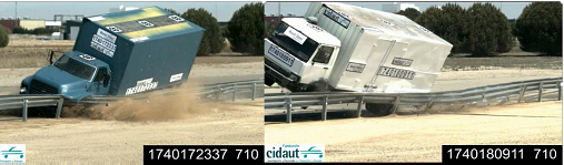 | | | La norma MASH 2016, en la sección 4.2, página 82 dice: "All heavy truck test vehicles should incorporate a cab-behind-engine configuration, not a cab-over-engine design". Esto significa que la norma MASH 2016 recomienda el empleo de camiones "tipo americano" (cab-behind-engine) y no el de camiones "tipo europeo" (cab-over-engine) para la realización de los ensayos, ya que los mismos NO se comportan de la misma manera al momento de la evaluación de los ensayos. Se adjunta video comparativo (https://we.tl/t-oRJq9loS1Z) realizado con fines de investigación, donde se muestra un camión "tipo americano" (cab-behind-engine) y uno "tipo europeo" (cab-over-engine), evaluados en el mismo laboratorio, impactando un mismo sistema de contención, bajo las mismas condiciones de velocidad y ángulo de impacto, donde pueden apreciarse las diferencias en el comportamiento de cada uno. | | |