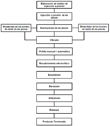 Ilustración 3. Proceso de producción de las jaladeras de zamac