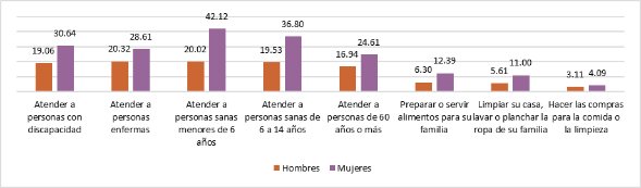 | 2.6.1 Elaborar y/o difundir estadísticas y estudios con enfoque de género e interseccional que permitan conocer y monetizar el tiempo invertido en las labores de cuidado, así como calcular su contribución al desarrollo económico y social. | Específica | INMUJERES STPS CONAPRED | 47 - Entidades no Sectorizadas HHG - Instituto Nacional de las Mujeres |