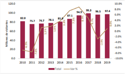 | Método de cálculo | [(Total de arribos de cruceros a las API´s administradas en el año t / Total de arribos de cruceros a las API´s administradas en el año t-1) 1]* 100% | ||||||||||||||||