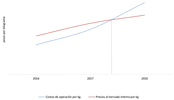 a. disminuyeron 36% en 2017 y aumentaron 12% en el periodo investigado, por lo que acumularon una caída de 28% en el periodo analizado, lo que se reflejó en una pérdida de su participación en el CNA de 3 puntos porcentuales, al disminuir 2 puntos en 2017 y 1 punto en 2018, y