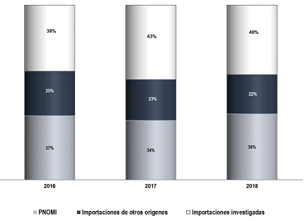 a. las importaciones originarias de China participaron en 54% en 2018, mientras que las importaciones de Estados Unidos lo hicieron en 43%, por lo que ambos países sumaron el 97% del total de las importaciones en el periodo investigado;