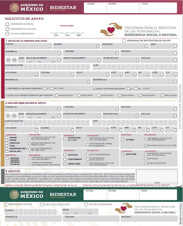 Es por ello que, a partir de 2019, el Gobierno de México crea el Programa para el Bienestar de las Personas en Emergencia Social o Natural, con la finalidad de mitigar los efectos negativos que provocan los fenómenos sociales o naturales en la esfera de los derechos sociales de las personas y/o familias, por lo que debe ser visto desde la perspectiva de protección social en una emergencia.