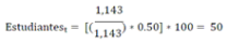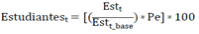 | Método de cálculo | Donde: Estudiantest = Número de estudiantes en formación de licenciatura Estt = Estudiantes en formación de licenciatura en el año t Estt_base = Estudiantes en formación de licenciatura en el año base (2019) Pe = Ponderador de estudiantes t = Año de observación t_base = Año base de referencia correspondiente a los datos registrados en 2019 |