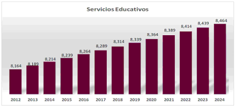 | Servicios Educativos | 8,164 | 8,189 | 8,214 | 8,239 | 8,26 4 | 8,28 9 | 8,314 | 8,339 | 8,36 4 | 8,38 9 | 8,414 | 8,43 9 | 8,46 4 |