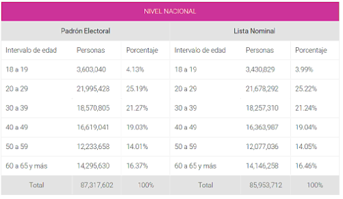 17 Datos del Registro Federal de Electores de 2013 a 2018 citados por Morales G., Perspectiva global de la democracia incluyente en Desafíos de la Democracia Incluyente, coord. Pérez Cepeda, M.; Eguiarte Mereles, C., (CDMX: Tirant lo Blanch, 2019), 279.