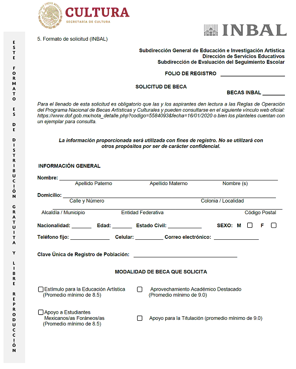 2. Formato de solicitud de beca (INAH)