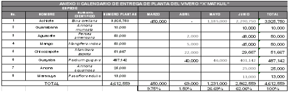 META DE PRODUCCION, DETERMINACION DE ESPECIES, Y CALENDARIO DE ENTREGA DE PLANTAS.