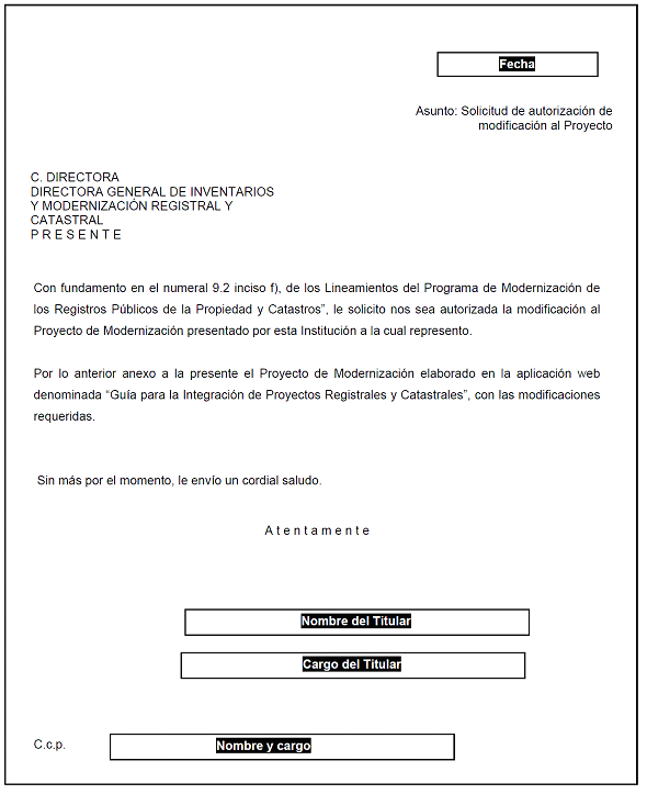 XIII. De ser autorizados los cambios, las INSTITUCIONES BENEFICIARIAS deberán actualizar el PROYECTO en la "Guía para la Integración de Proyectos Registrales y Catastrales", utilizando la E. FIRMA y remitiéndolo a la DGIMRC, a través de la VENTANILLA ÚNICA;