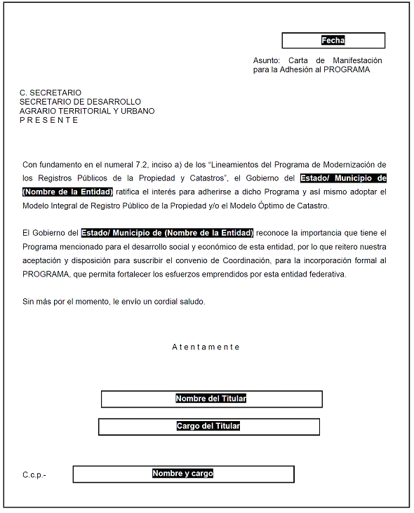 Anexo 2. Carta de manifestación para la adhesión al Programa.