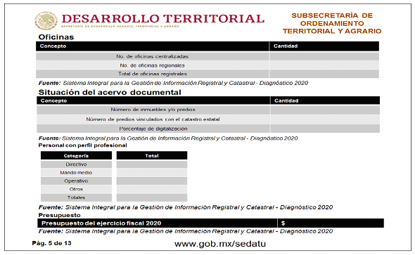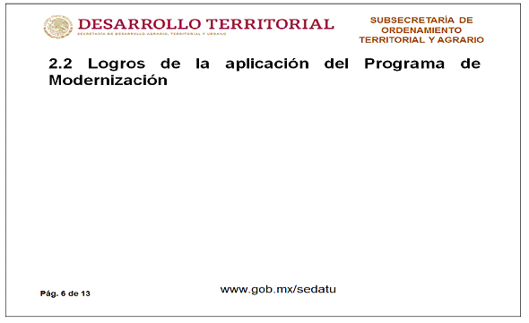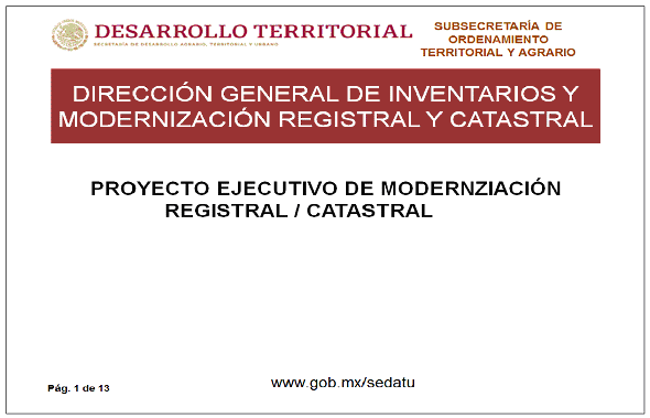 Derivado de la reforma de la Ley Orgánica de la Administración Pública Federal (LOAPF), se creó la Secretaría de Desarrollo Agrario, Territorial y Urbano (SEDATU), a la cual se integraron las atribuciones relacionadas con el territorio, la materia agraria, el desarrollo urbano y la vivienda; es por ello que, a partir de 2013, el Programa de Modernización de los Registros Públicos de la Propiedad y Catastros es operado por esta Secretaría.