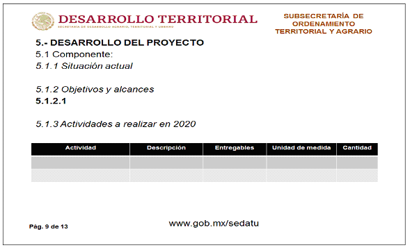 Por su parte, el Programa Sectorial de Desarrollo Agrario, Territorial y Urbano (PSEDATU) 2020- 2024, contempla en su Estrategia prioritaria 1.4 "Fortalecer el ordenamiento territorial y los acervos históricos del territorio para la justa distribución de cargas y beneficios, mediante la modernización y actualización de los registros públicos de la propiedad y catastros, y del catastro rural nacional", cuyas acciones puntuales contemplan: "Impulsar proyectos de modernización de Registros Públicos de la Propiedad y Catastros, para brindar certeza patrimonial con pertinencia cultural", "Impulsar proyectos de modernización del Catastro Rural Nacional", "Promover estrategias de inclusión social para el adecuado cobro del impuesto predial, fomentando su incremento paulatino", "Impulsar la planeación y ordenamiento del territorio a partir de la actualización, mejora y homologación de la información territorial y agraria existente" y "Promover, mediante la capacitación, la dotación de infraestructura y el fortalecimiento financiero de los Registros Públicos de la Propiedad y los Catastros, así como del Registro Agrario Nacional, mecanismos de recaudación responsables y progresivos", por lo que la implementación del PROGRAMA aportará, mediante esas acciones puntuales, al cumplimiento de la Estrategia prioritaria 1.4 del mencionado Programa Sectorial.