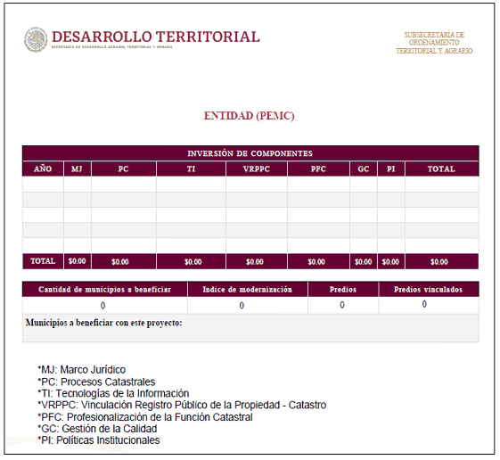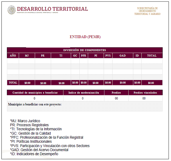 El Programa de Modernización de los Registros Públicos de la Propiedad y Catastros tiene entre una de sus finalidades la de generar interés y una oportunidad de transformación a la modernización en los gobiernos estatales que presentan menor avance, a efecto de que adopten el Modelo Integral de Registro Público de la Propiedad y el Modelo Óptimo de Catastro, para que la inversión conjunta para el desarrollo de los proyectos ejecutivos refleje un mayor avance.