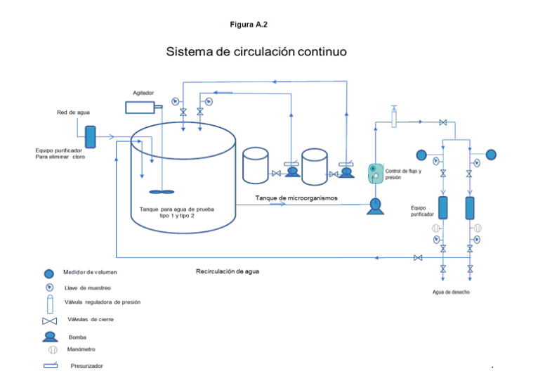 G.4.2 Modo de operación continúa con o sin recirculación para un flujo mínimo de 1 L / minuto.