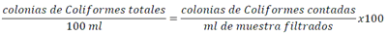 4.6 Coliformes totales, a las bacterias de la familia Enterobacteriaceae, aerobios o anaerobios facultativos que se caracterizan por su capacidad para fermentar la lactosa con producción de ácido y gas, en un periodo de 48 h y con una temperatura de incubación de 308 ± 0.5 K (35 ± 0.5ºC). Incluyen a los coliformes fecales o termotolerantes, ya que requieren de una temperatura de 317 ± 0.5 K (44 ± 0.5°C). Son considerados los indicadores más regularmente usados para la medición de la calidad del agua.