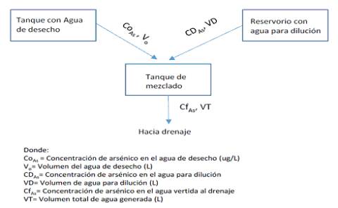 Esquema para el balance de masa para ajuste de la concentración inicial de arsénico en el flujo de