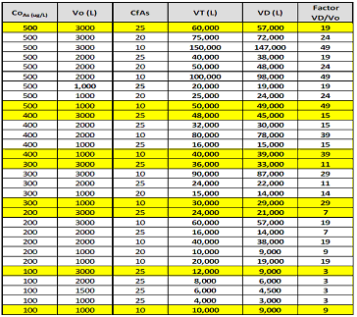 Tabla G.2. Calculo del Volumen de agua requerido para dilución en función del volumen de agua de