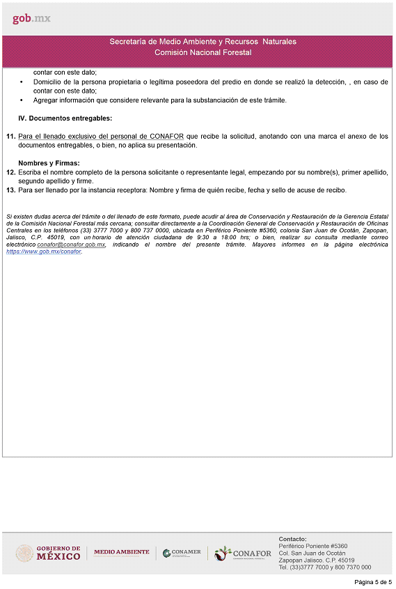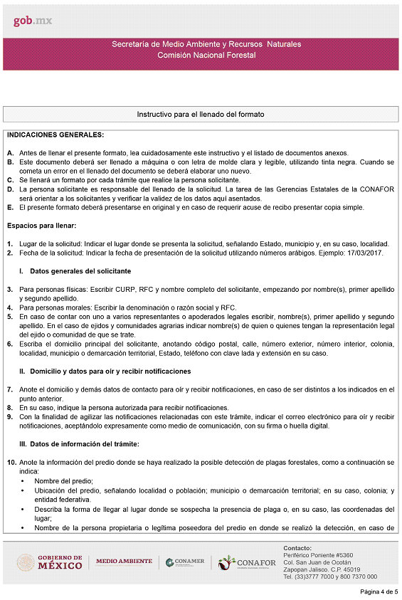 CUARTO.- El formato para el trámite a que se refiere el presente Acuerdo, así como la información para la realización del mismo, podrá ser consultado en el portal de Internet https://www.gob.mx/conafor, en el apartado "Acciones y Programas".