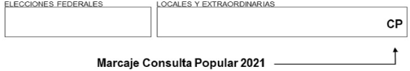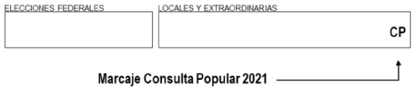 En tal virtud, se considera oportuno que para la jornada de la Consulta Popular 2021, el marcaje en la CPV se realice dentro del rectángulo correspondiente a "LOCALES Y EXTRAORDINARIAS".