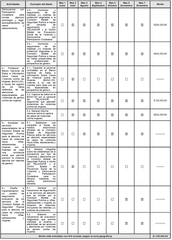 Cronograma de actividades y gasto.
