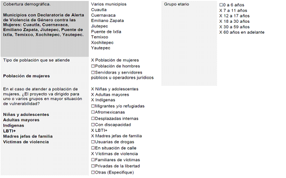 | Instancias Municipales de la Mujer | Coordinación para el seguimiento de los casos de violencia contra niñas, adolescentes y mujeres. |