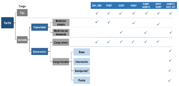 | Categoría tarifaria | Descripción | Tarifa anterior1/ |