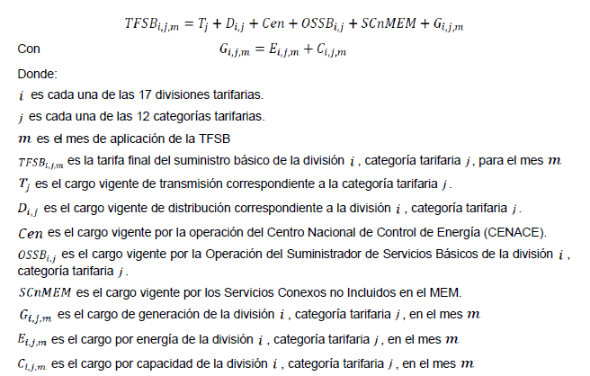 es de 0.0054 pesos/kWh y será aplicable para las 12 categorías tarifarias y 17 divisiones tarifarias. Una vez que se expida la regulación tarifaria correspondiente, el cargo deberá referirse al documento que para tal efecto se emita.