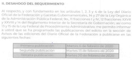 Al resultar un hecho notorio para el suscrito en términos del artículo 88 del Código Federal de Procedimientos Civiles, el contenido de las direcciones electrónicas referidas de las que se desprende que, se publicó el edicto ordenado en auto veintiuno de enero de dos mil veinte, En ese orden de ideas, del oficio de cuenta, se advierte que la última publicación de los edictos, siendo la última el dieciocho de febrero de dos mil veintiuno.