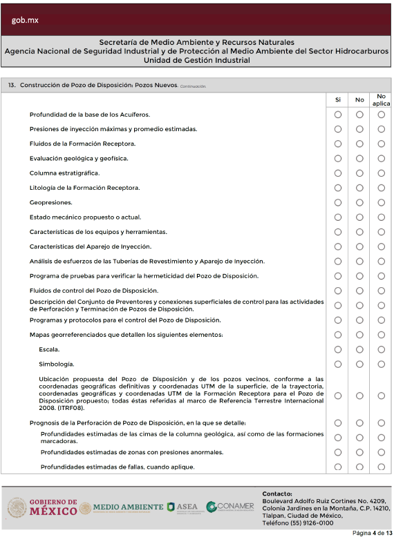 Artículo 13. Los Regulados deberán conservar una copia del Análisis de Riesgo de la ingeniería de detalle de los Pozos de Disposición, Construcción de Pozos de Disposición, Conversión de Pozo, Taponamiento y mantenimiento de Pozos de Disposición, Operación de Inyección, mantenimiento y desmantelamiento de las Instalaciones de Inyección para la disposición final, según la etapa en la que se encuentre; que incluya aquellos Riesgos propios y los generados por las actividades realizadas por contratistas, subcontratistas, prestadores de servicio y proveedores del Regulado.