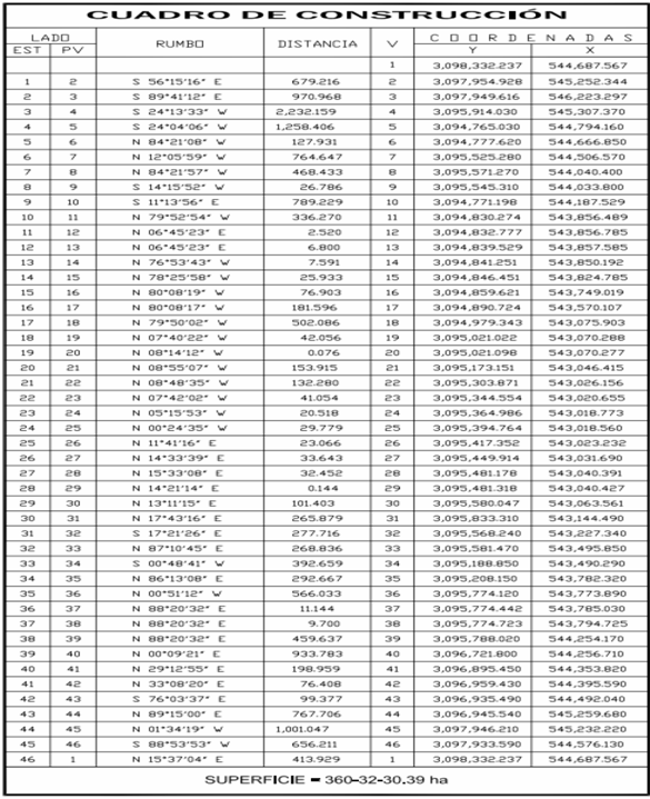 Por tal motivo se elaboró plano definitivo y cuadros de construcción, respecto de la superficie, libre de inconformidad, Polígono 3.