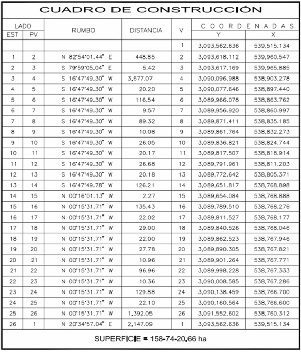 | SUPERFICIE ANALITICA DEL POLIGONO 5-C | 158-74-20.66 HA. |