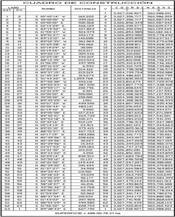 | SUPERFICIE ANALÍTICA DEL PREDIO | 498-00-78.31HA |
