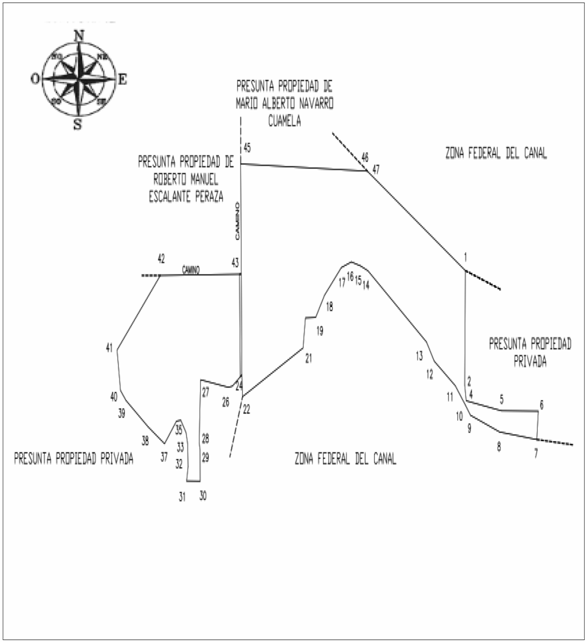 | Noroeste | Presunta propiedad de María Jesús Jusacamea Coronel, presunta propiedad y zona federal del canal. | 723.915 |