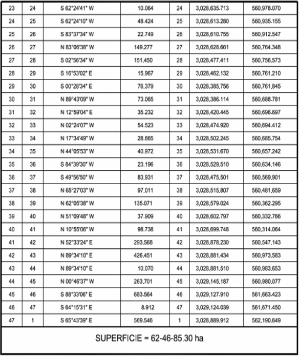 | SUPERFICIE ANALÍTICA DEL PREDIO | 62-46-85.30 HA. |