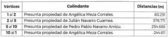 | Vértices | Colindante | Distancias (m) |
