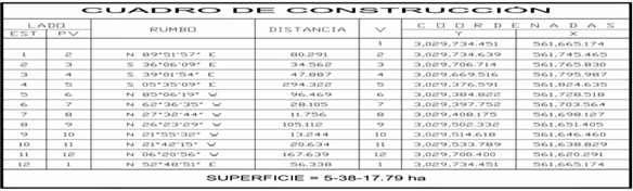 Por tal motivo se elaboró plano definitivo y cuadros de construcción, respecto de la superficie, libre de inconformidad, Polígono 12