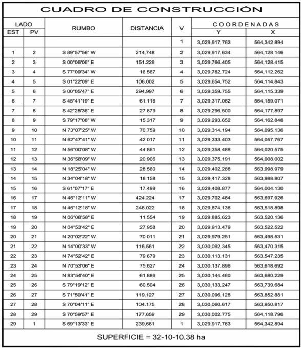 Por tal motivo se elaboró plano definitivo y cuadros de construcción, respecto de la superficie, libre de inconformidad, Polígono 10.