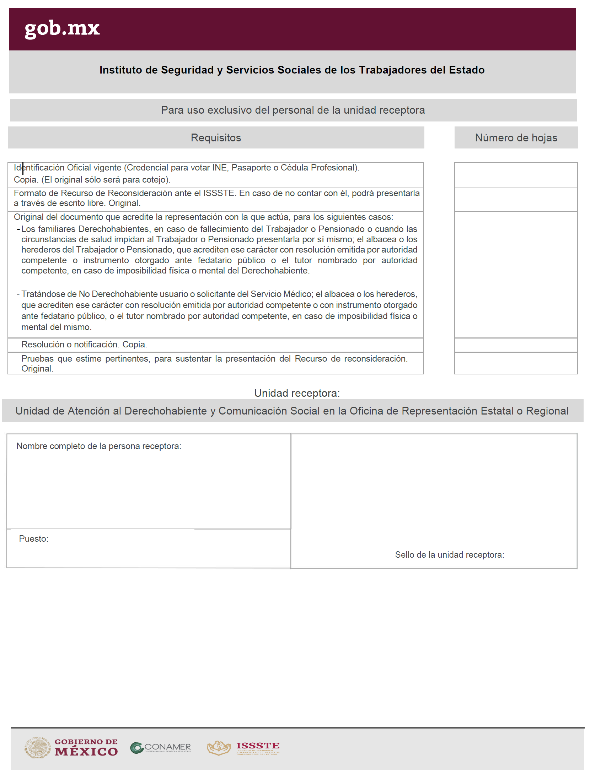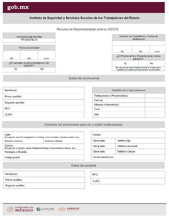 | Recurso de Reconsideración ante el ISSSTE. | FF- ISSSTE-04 | Recurso de Reconsideración ante el ISSSTE. |
