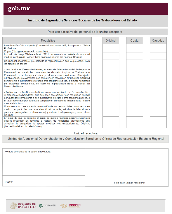 DE TRÁMITES DE QUEJA MÉDICA ANTE EL ISSSTE, SOLICITUD DE REEMBOLSO POR GASTOS