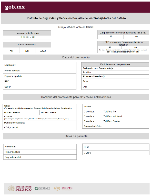 | Queja Médica ante el ISSSTE. | FF- ISSSTE-02 | Queja Médica ante el ISSSTE. |